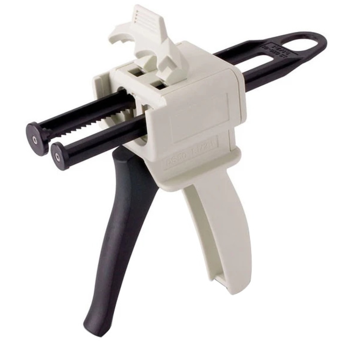 Manual dispenser for accurate mixing and delivery of dual-ratio dental materials.