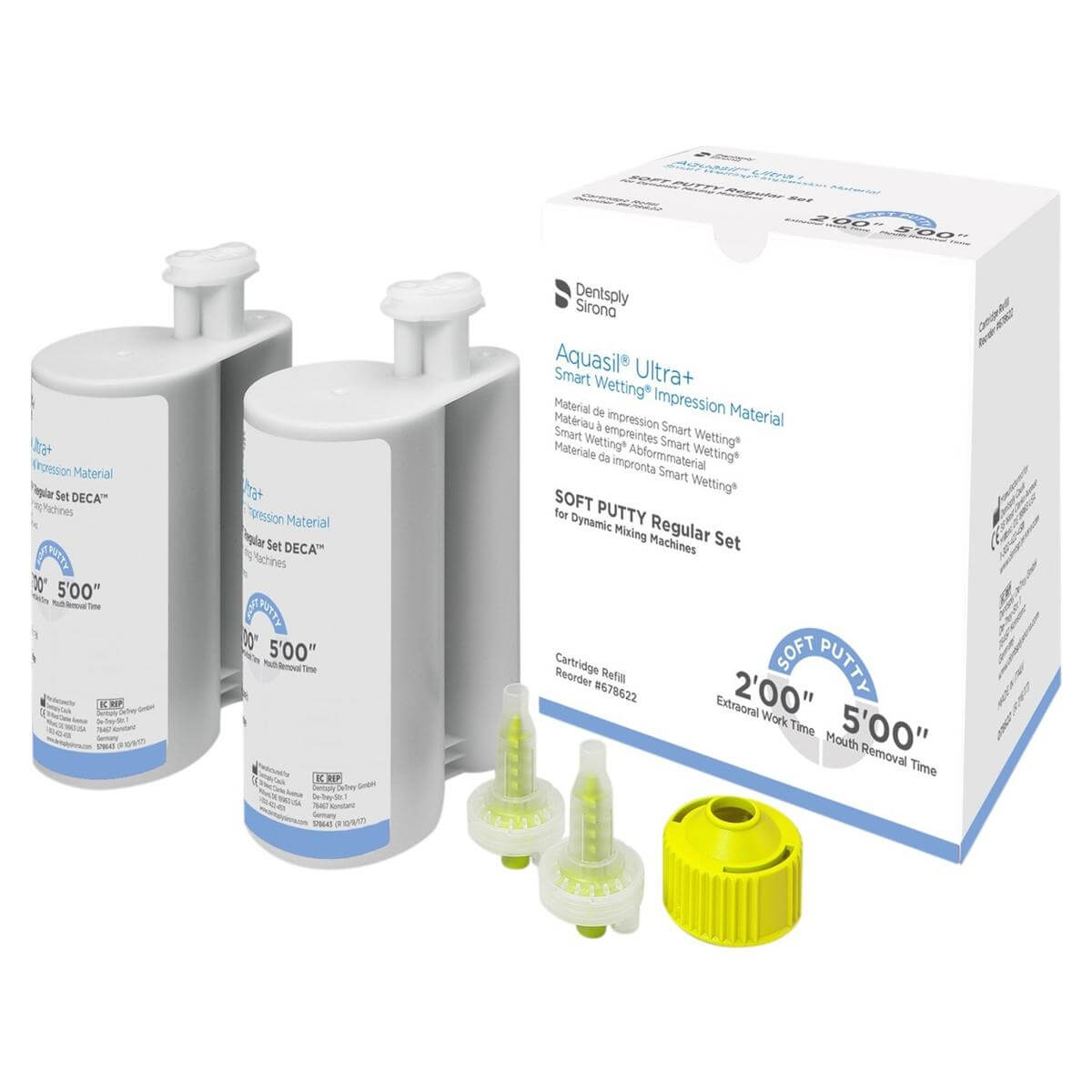 Aquasil Ultra+ Machine Mix, Soft Putty, Regular Set is an advanced dental impression material that offers high accuracy and dimensional stability, making it ideal for a variety of clinical applications. Its easy handling and compatibility with different techniques enhance its utility in restorative and orthodontic procedures.