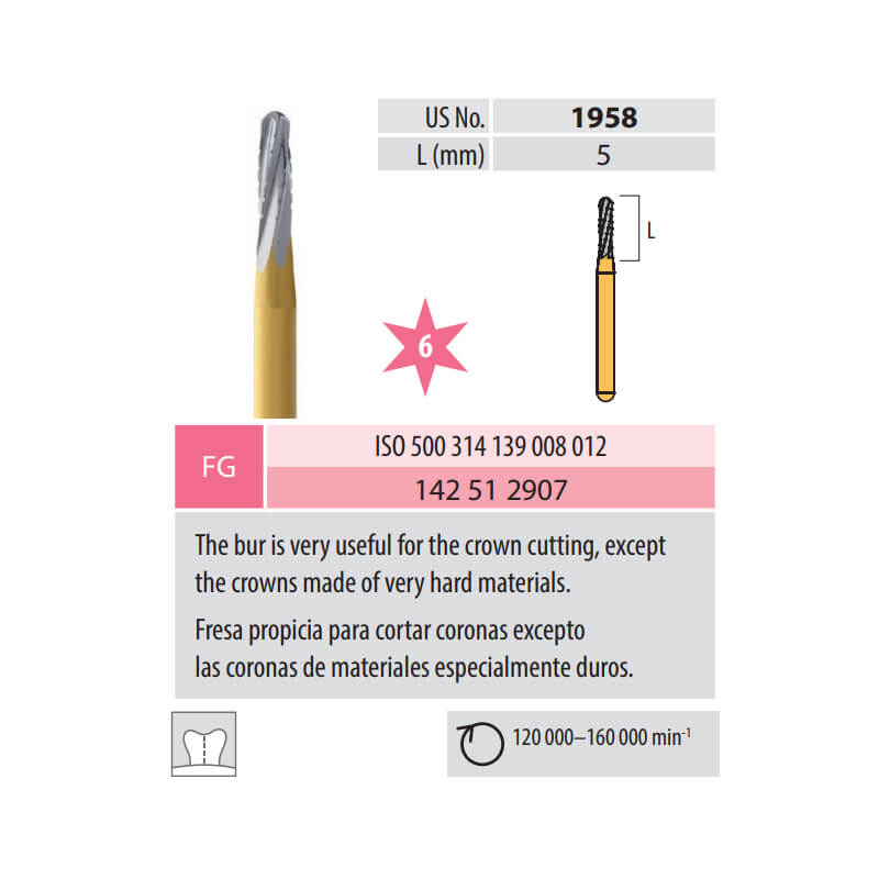 The Carbide Bur FG 139-012 is designed for efficient metal cutting, providing enhanced precision during restorative dental procedures. Its design aims to reduce chair time while maintaining effective performance in various clinical settings.