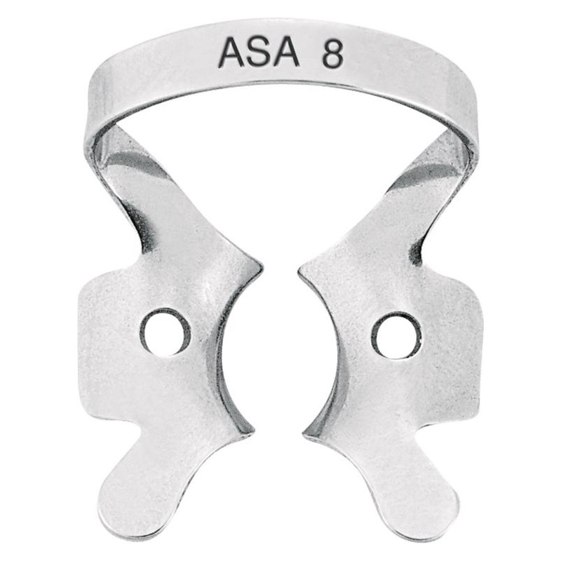 The winged Fig. 8 clamp is an essential tool for dental professionals, providing reliable stabilization of round upper molars. Its design enhances access and visibility, making it suitable for a range of dental procedures, including restorative and endodontic treatments.