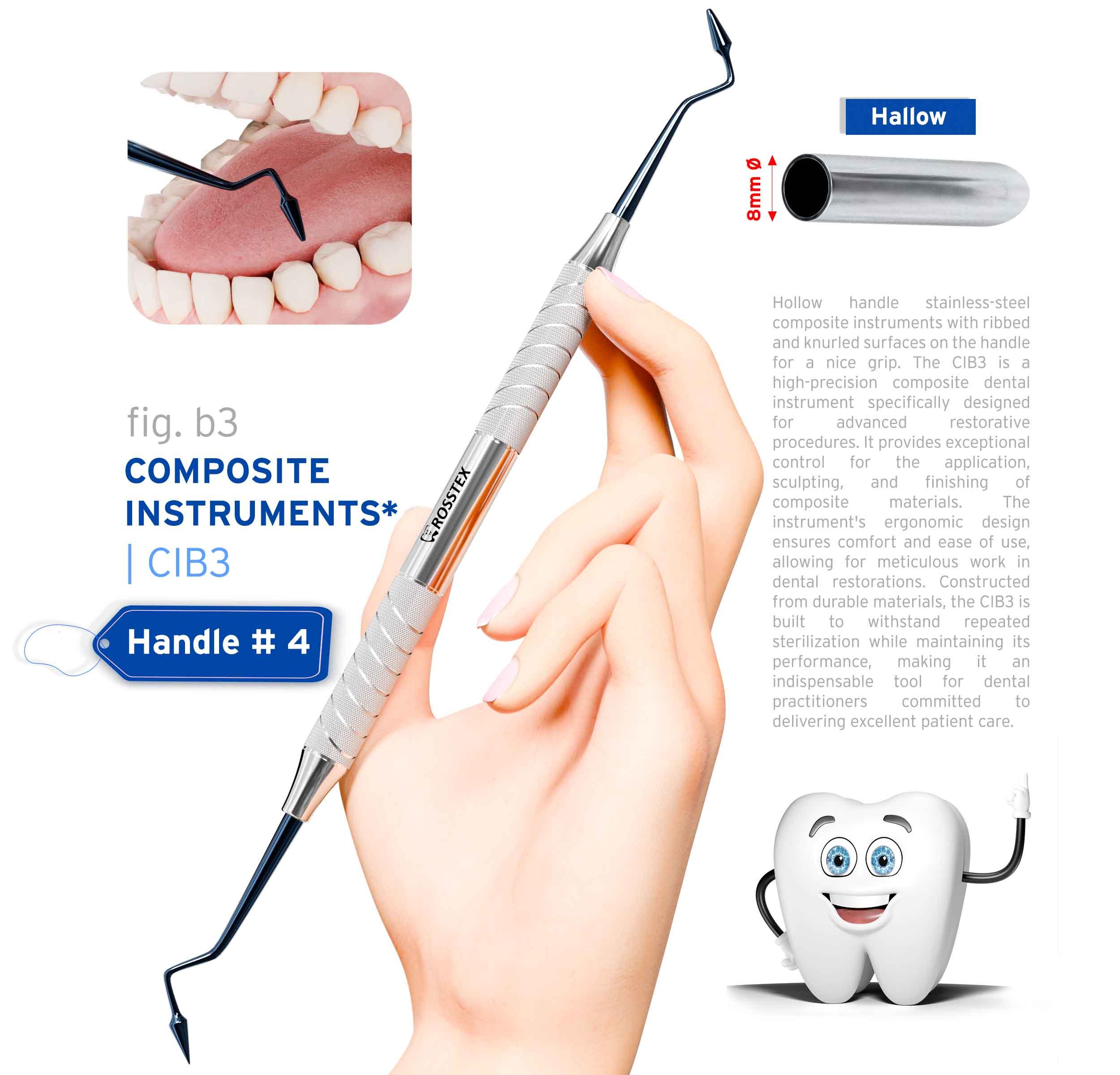 The Composite Instrument B3, Handle No. 4 is an essential tool for dental professionals focused on precision in composite restoration. Its durable design and effective sculpting capabilities make it suitable for a variety of restorative applications, ensuring optimal results in dental procedures.