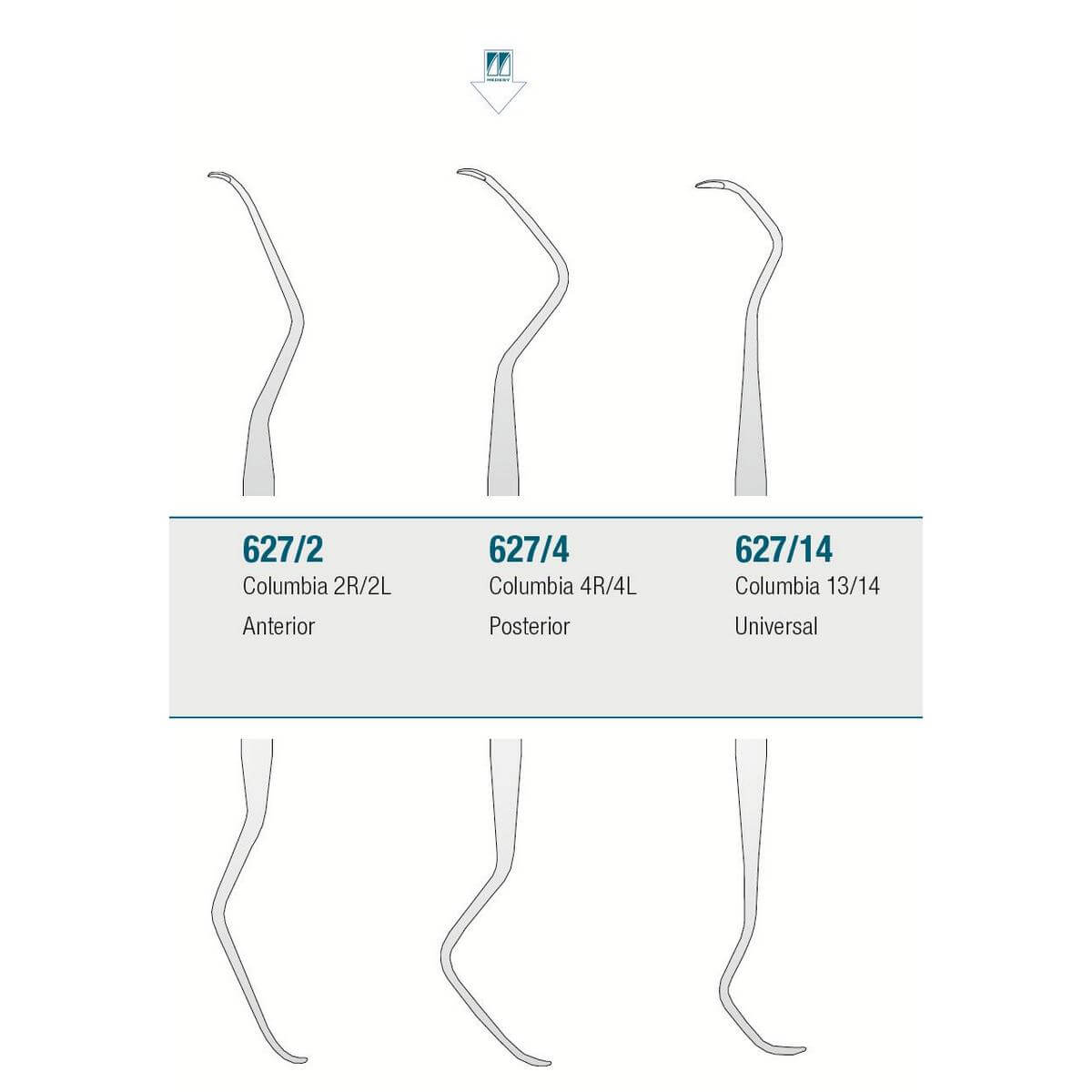Posterior For the removal of sub-gingival calculus and for the root cleaning. Designed to work in all areas of the mouth with a semicircular tip used at 90° to the tooth root surface. Both sides of each blade can cut.