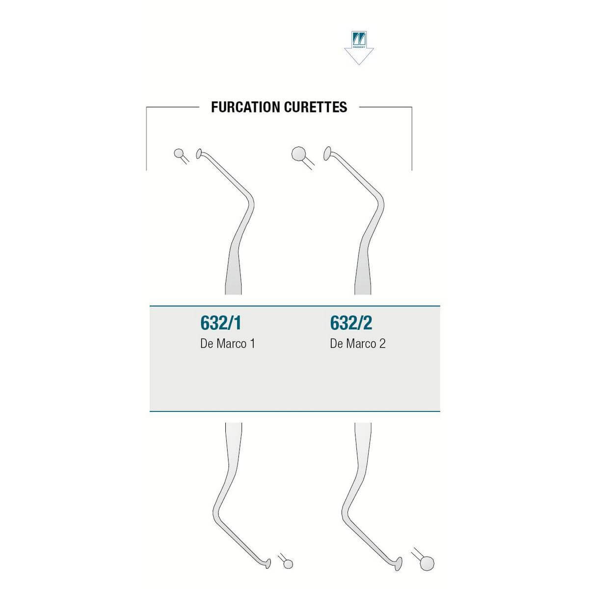 FURCATION CURETTES: for the removal of calculus and plaque in the furcation areas For the removal of sub-gingival calculus and for the root cleaning. Designed to work in all areas of the mouth with a semicircular tip used at 90° to the tooth root surface. Both sides of each blade can cut.