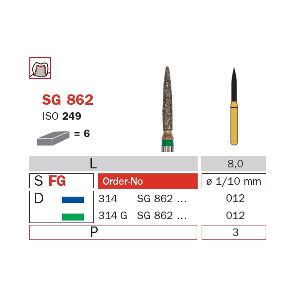 Diamond Bur, FG 012, Medium, Flame (Goldies) ISO #249
