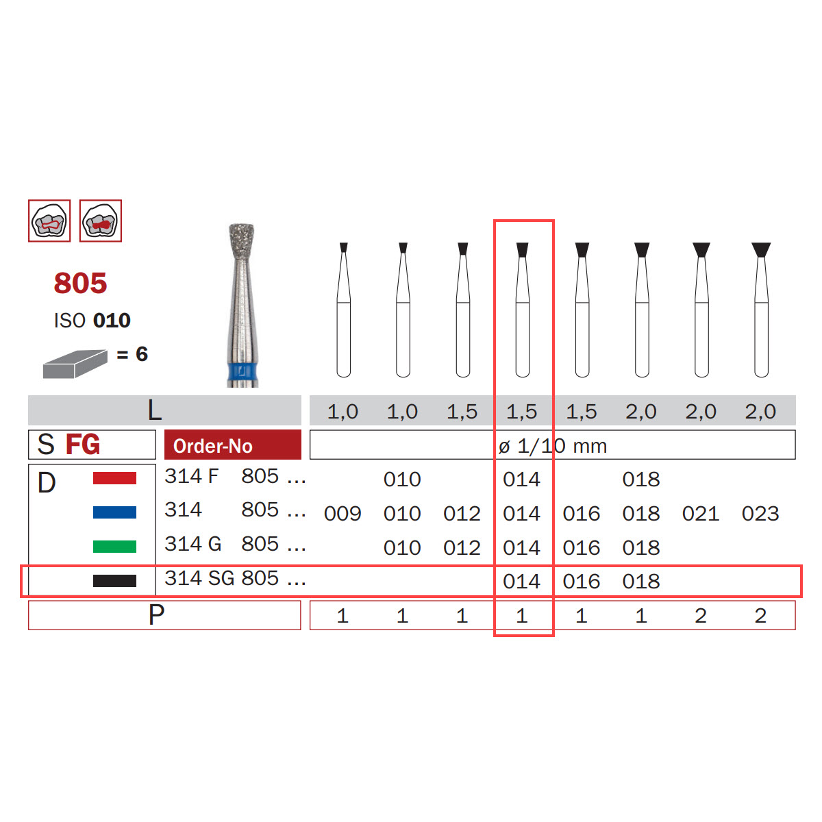 Diamond Bur, FG-014, Medium, Inverted Cone ISO #010