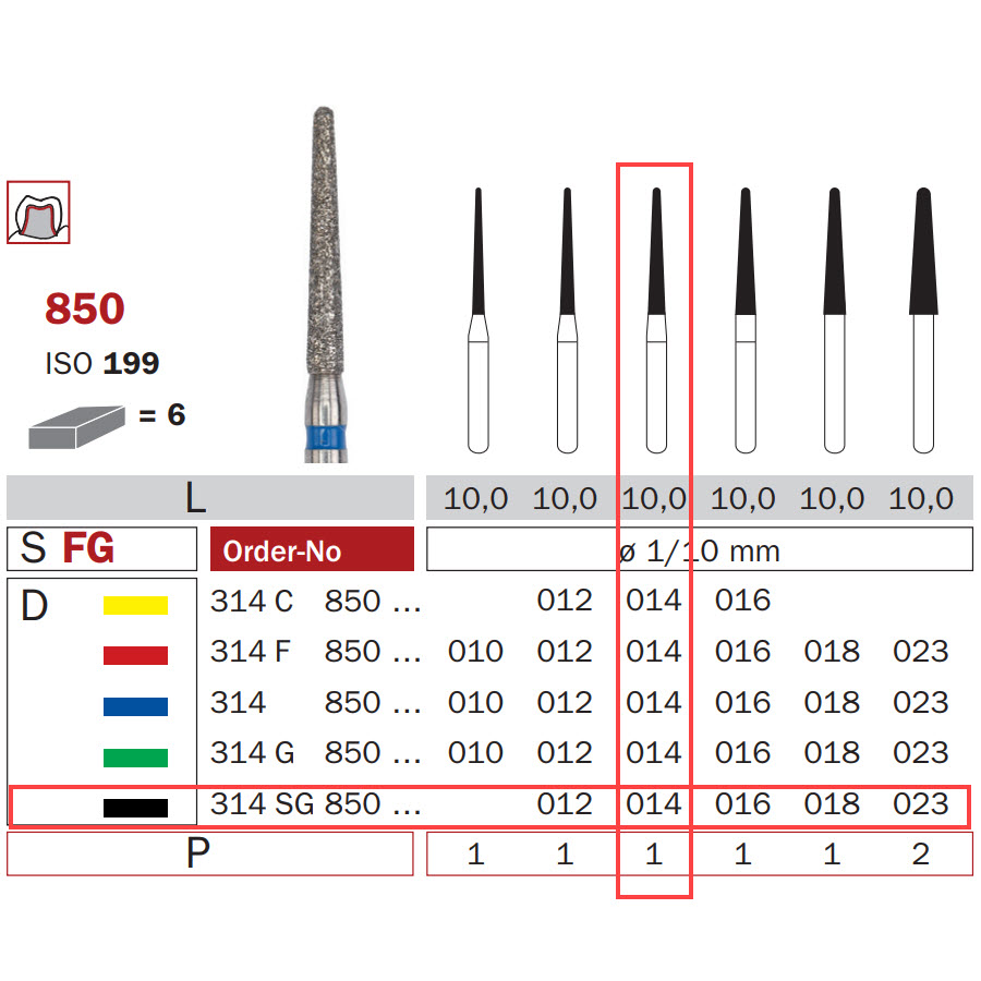 Diamond Bur, FG 014, X-Coarse, Cone Round End ISO #199