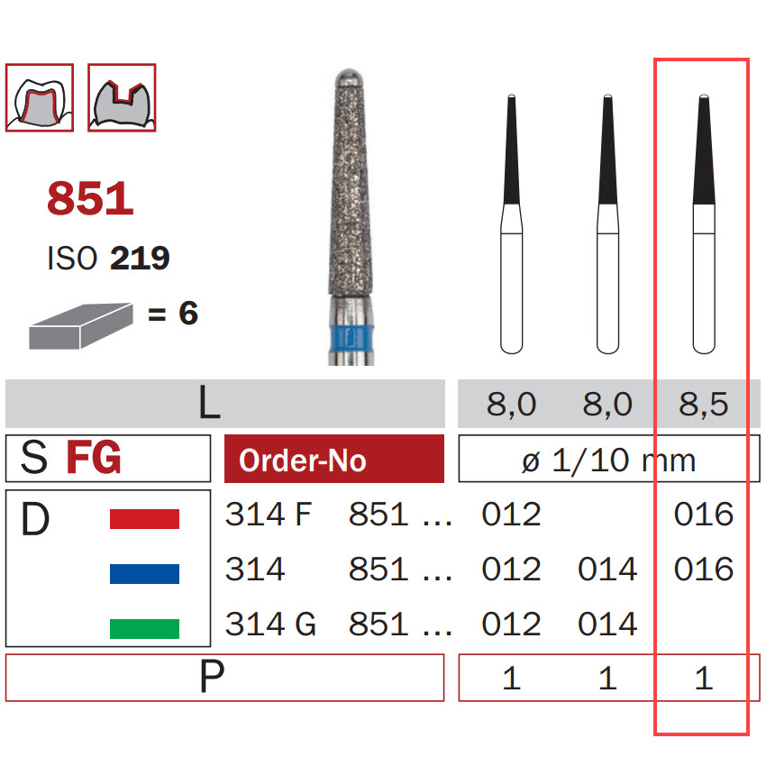 Diamond Bur, FG 016, Medium, Safe End Cone ISO #219
