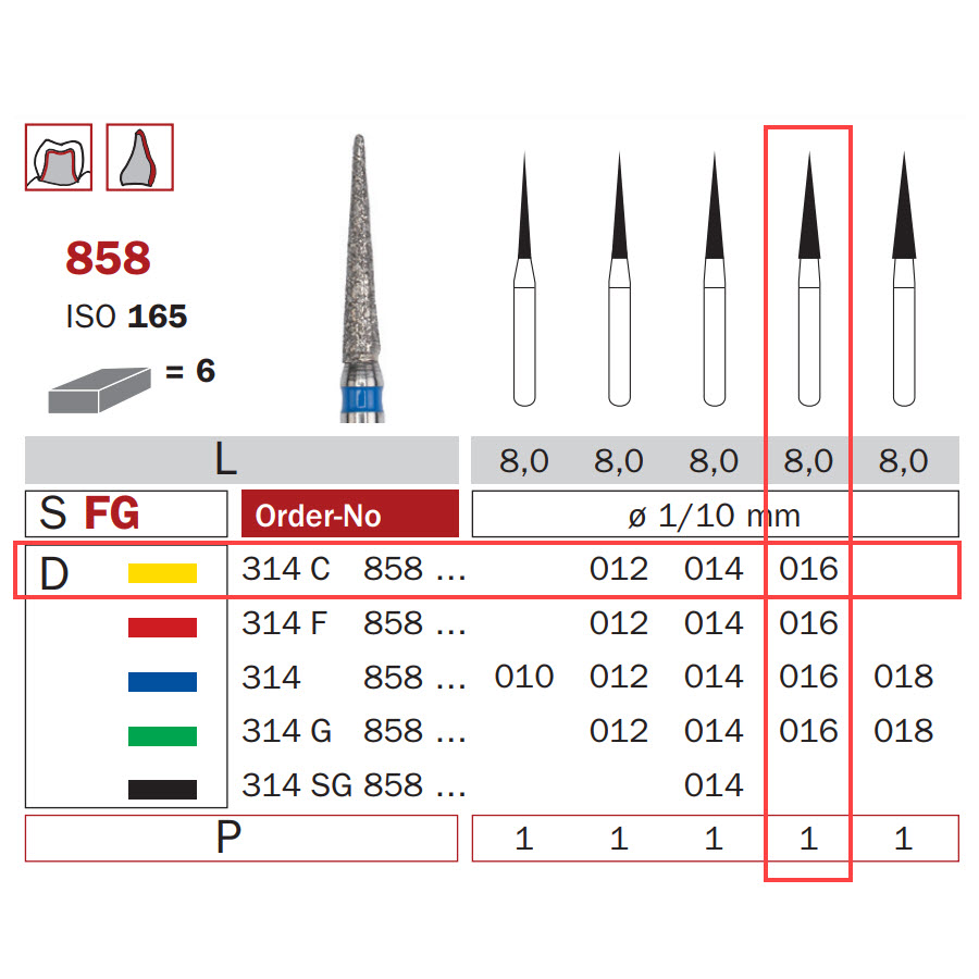 Diamond Bur, FG 016, X-Fine, Cone ISO #165