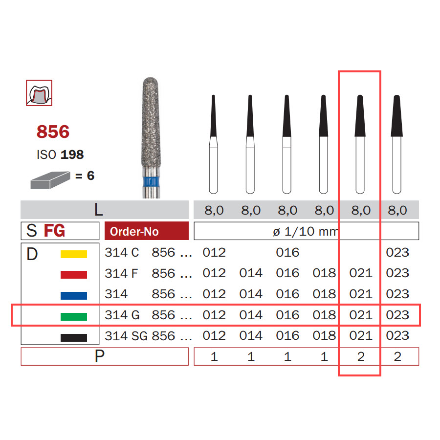 Diamond Bur, FG 021, Coarse, Cone Round End ISO #198