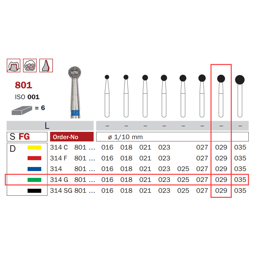 Diamond Bur, FG 029, Coarse, Round ISO #001