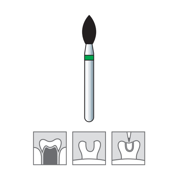 - Diamond burs, flame shape, coarse grit, FG 243-023.