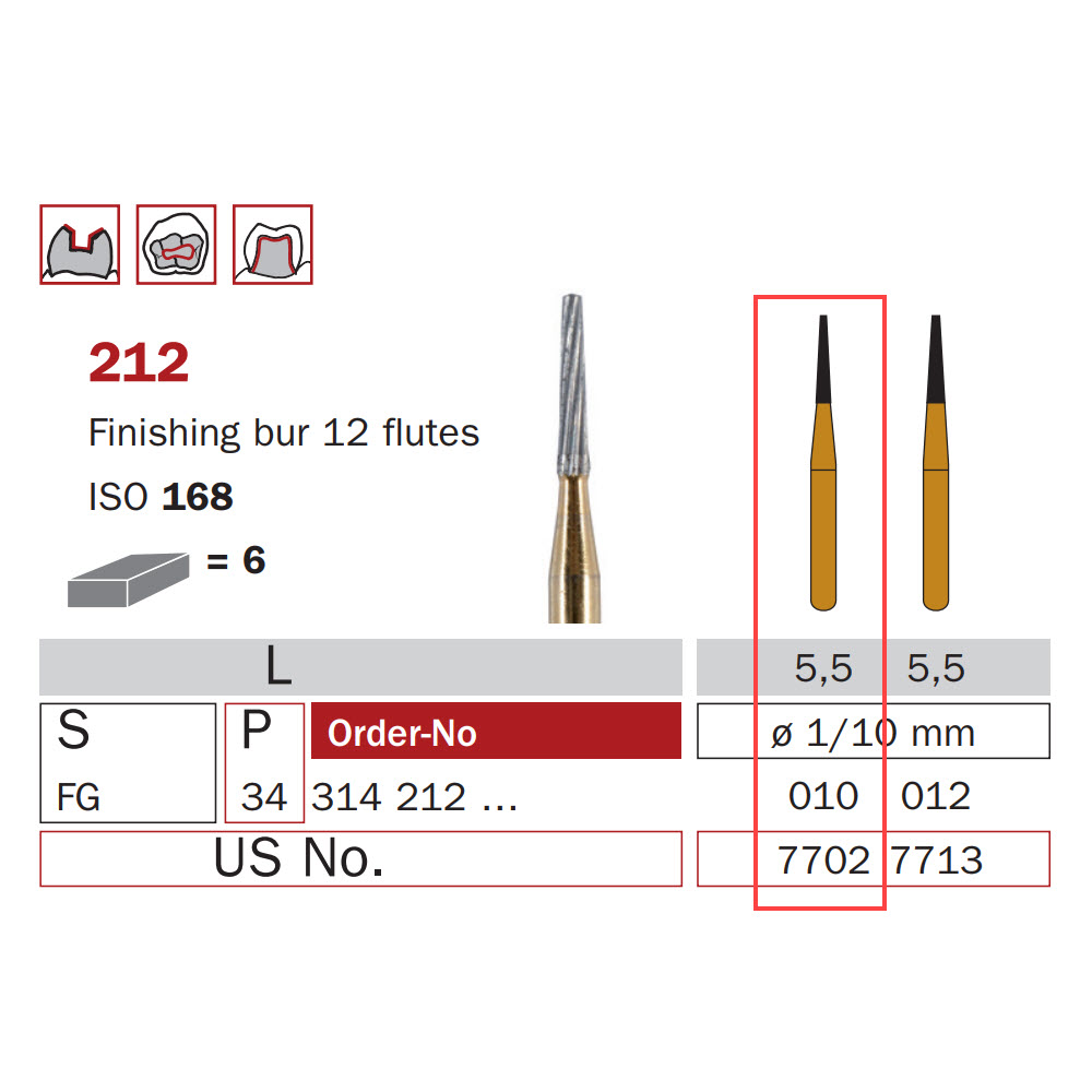 Finishing Carbide Bur, FG 010, Truncated Cone, 12 Flutes, ISO #168