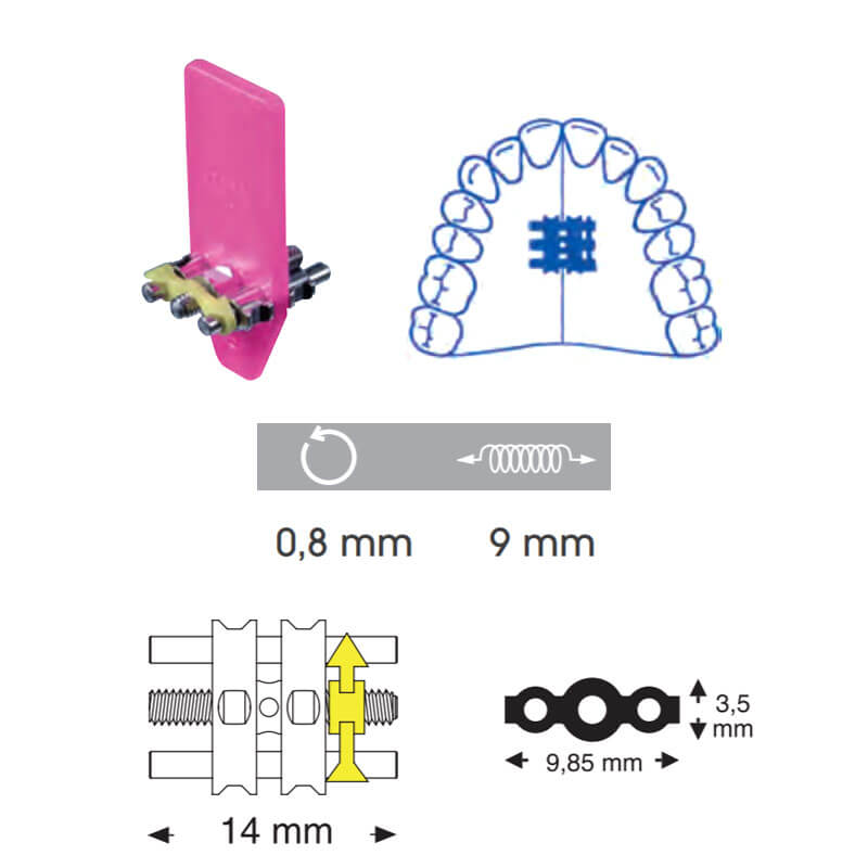 The Orthodontic Standard Screw, Upper, 14 mm is designed to facilitate precise adjustments in orthodontic treatments, aiding in effective tooth movement.