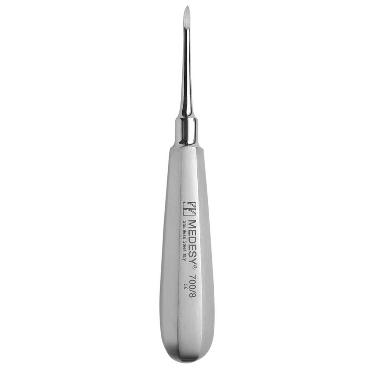 The Root Elevator Heidbrink is a specialized dental instrument designed for the apical elevation of root tips and the removal of root fragments. It is utilized to loosen the tissue surrounding the tooth, facilitating effective extraction of roots.