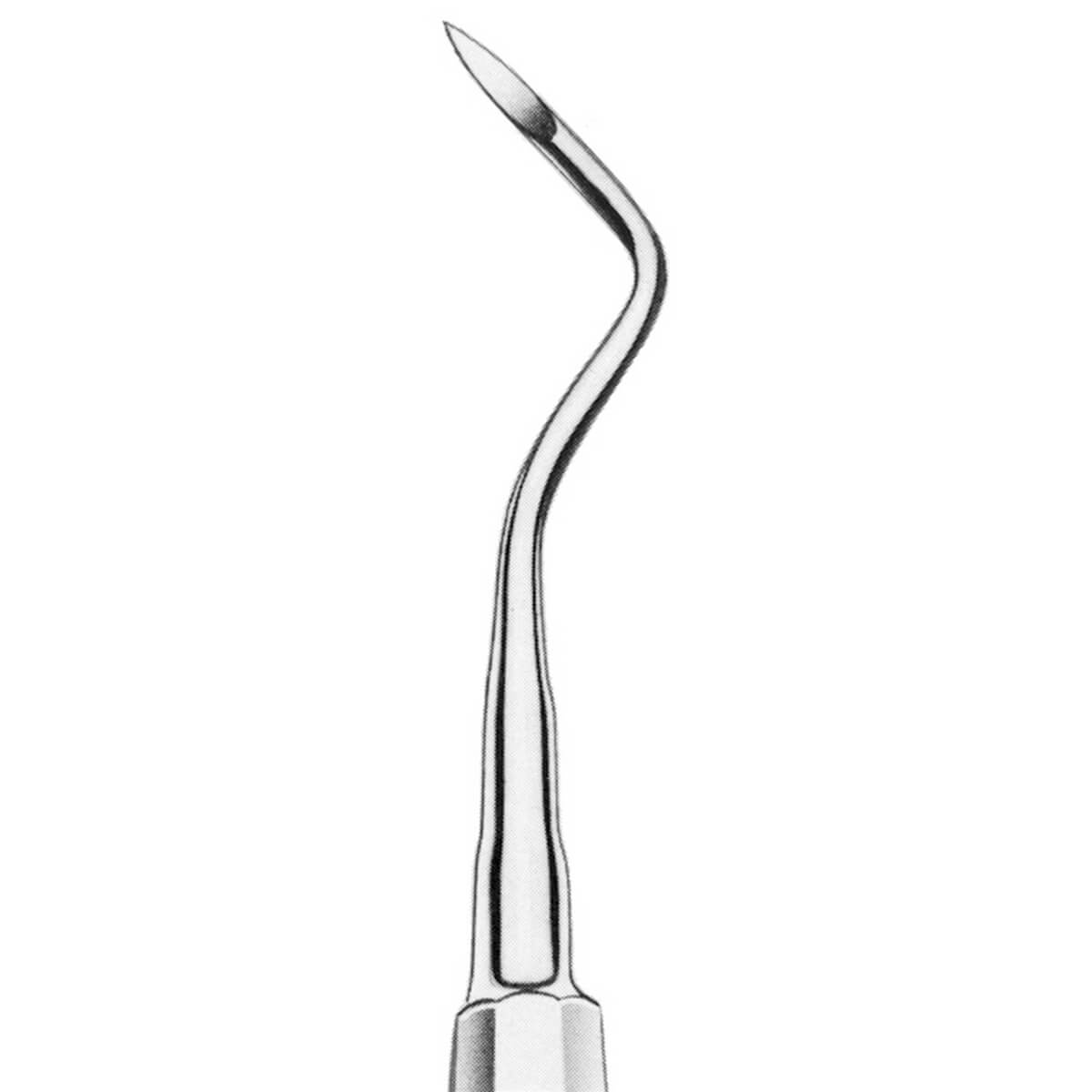 Apical elevation of root tips, for roots fragments Used as a lever during the extraction of retained roots fragments. It is pushed in between the gums and the root exterior and used to loosen the surrounding tissue. Apical elevation of root tips, for roots fragments