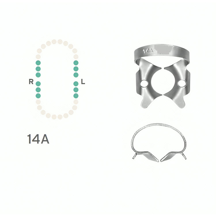 The Rubber Dam Clamp #14A is an essential tool for dental professionals working with partially erupted or irregular molars. Its secure stabilization and enhanced isolation capabilities make it ideal for a variety of dental procedures, ensuring optimal access and treatment efficacy.