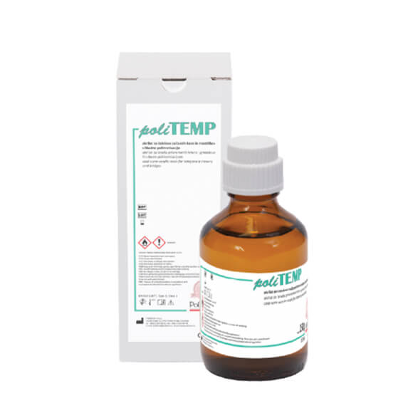 PoliTEMP offers a comprehensive solution for the fabrication of temporary crowns and bridges through its two-component system: PoliTEMP Liquid and PoliTEMP Powder. When combined, these components form a cold-curing acrylic resin that delivers precise, durable, and esthetically pleasing provisional restorations.