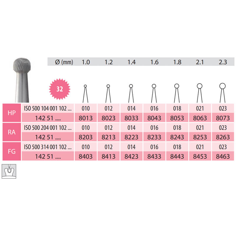 Trimming & Finishing Carbide Bur, Round, RA 001-021, 32 Blades, PK/5