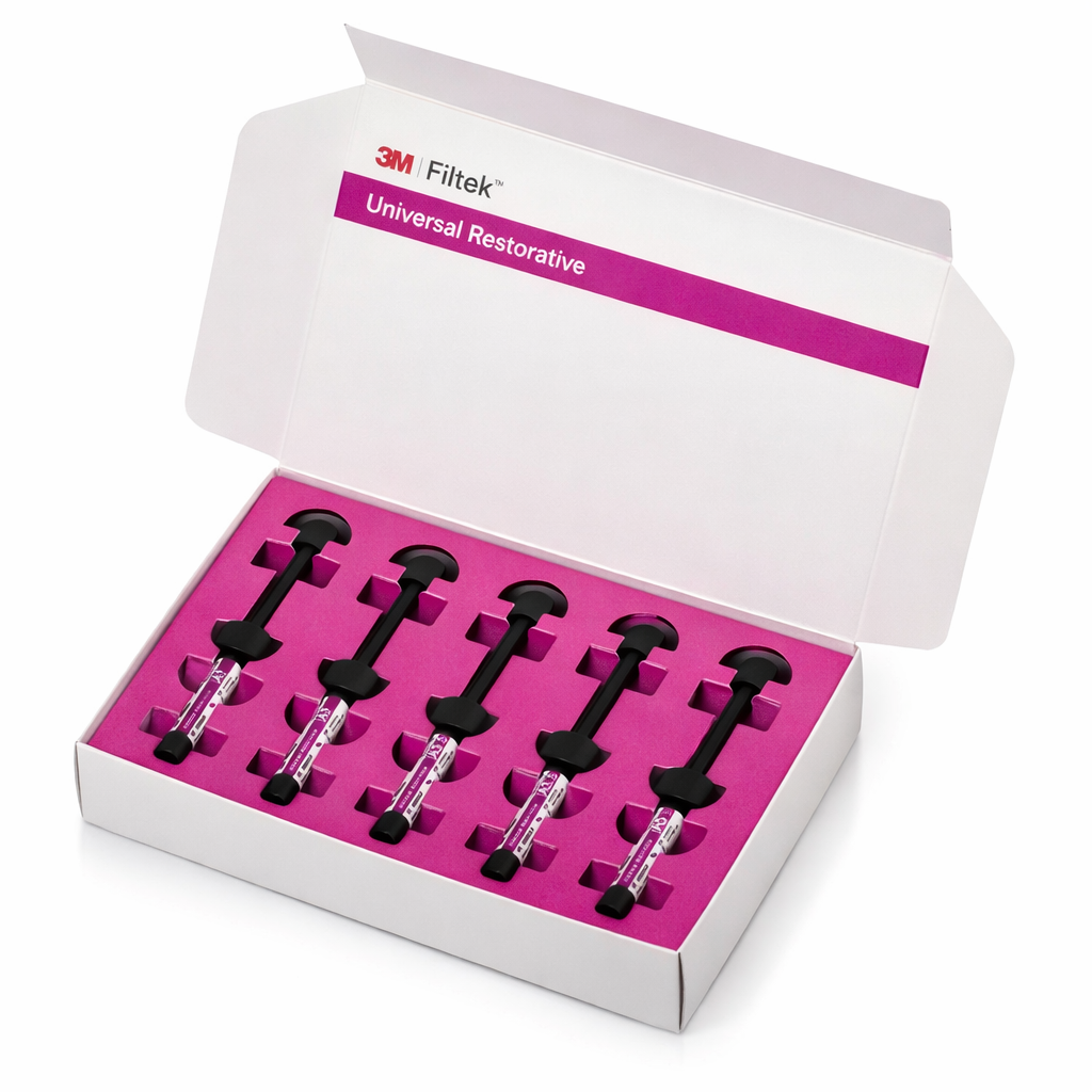 3M Filtek™ Universal Restorative Syringe Kit 6570-SK combines simplified shade selection with high-performance nanocomposite technology. Designed for efficiency without compromising esthetics or durability, it provides clinicians with a reliable, versatile solution for everyday restorative procedures across a wide range of clinical scenarios.