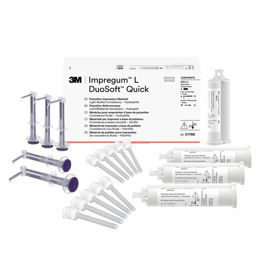 Polyether impression material refill (light body quick set) providing excellent flow, hydrophilicity, and fast-setting performance for precise, void-free impressions in challenging cases.
