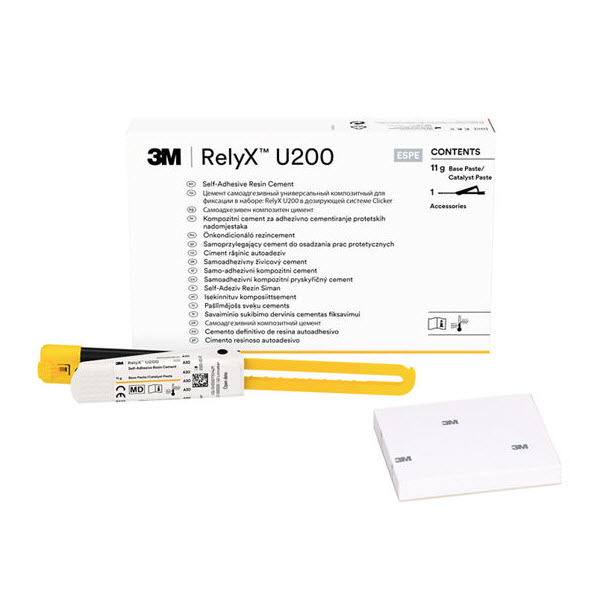 Self-adhesive resin cement in clicker dispenser (A2 shade) with pre-measured dosing for convenient, consistent mixing and application.