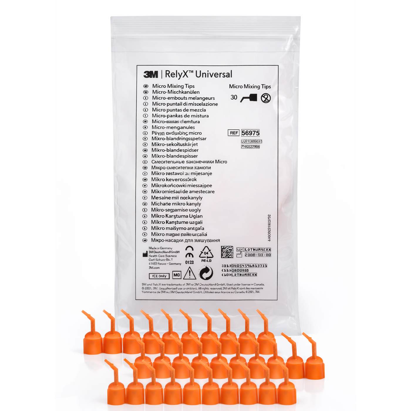 Micro mixing tips for consistent and precise mixing of universal resin cement with minimal waste.