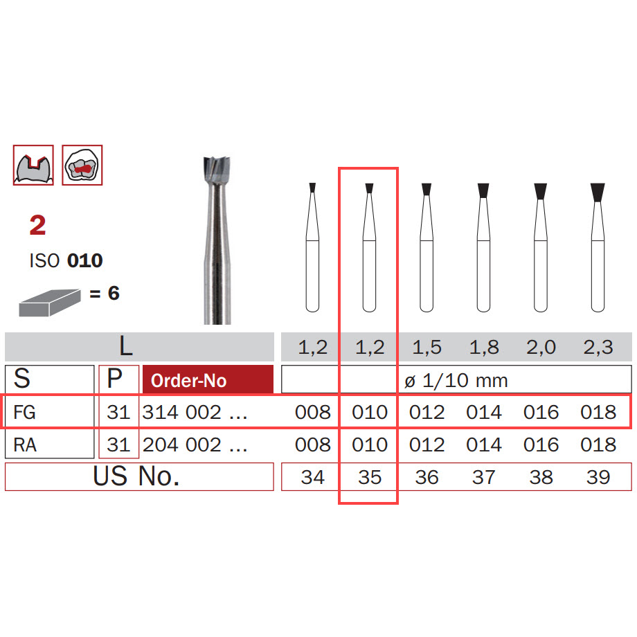 - Carbide Bur, FG 010, Inverted Cone ISO #010