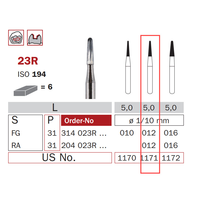 Carbide Bur, HP 012, Cone Round End ISO #194