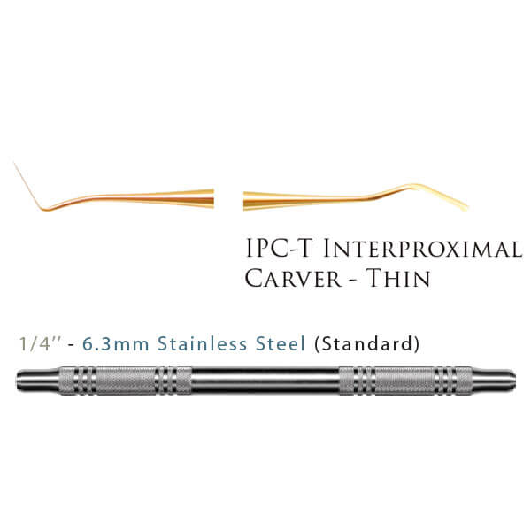 The Composite Thin Carver IPC-T is designed for precise carving and contouring of composite materials in anterior restorations. Its double-ended design allows for versatility in accessing interproximal areas, enhancing the clinician's ability to achieve optimal anatomical form.