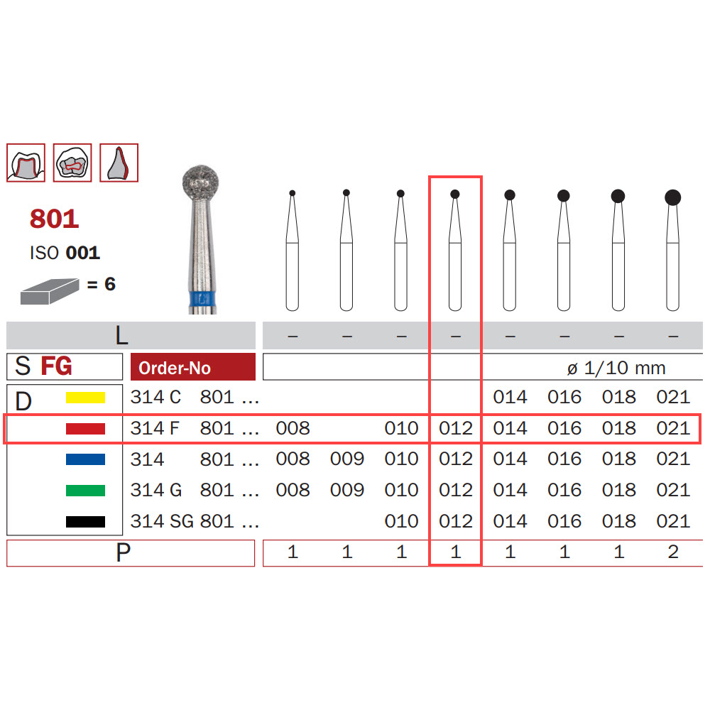 Diamond Bur, FG-012, Fine, Round ISO #001