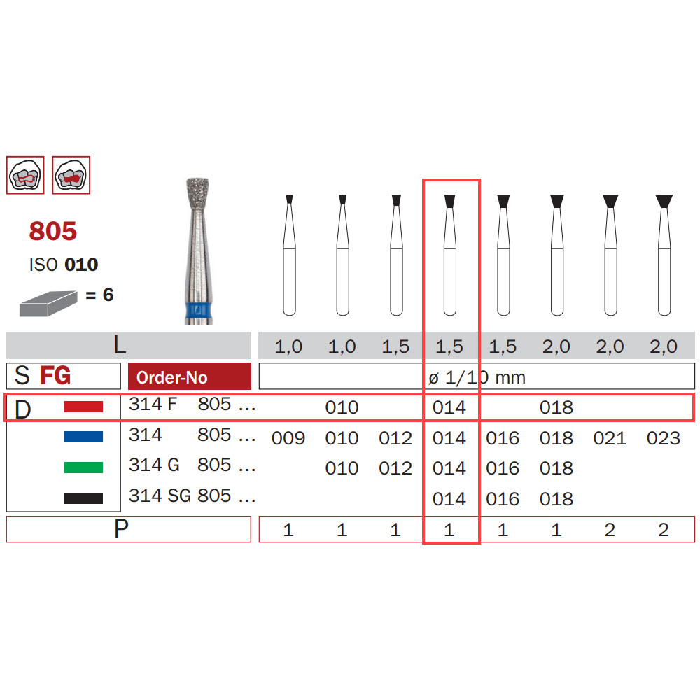Diamond Bur, FG-014, Fine, Inverted Cone ISO #010