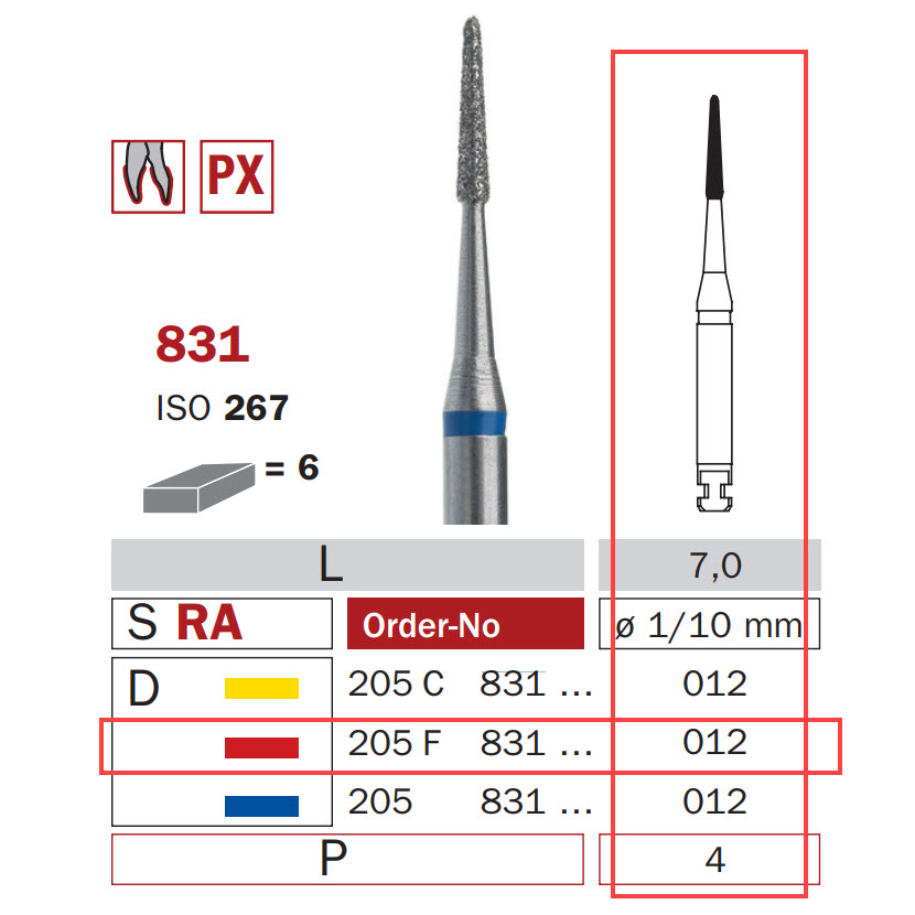 Diamond Bur, Long RA 012, Fine, Small Cone ISO #267