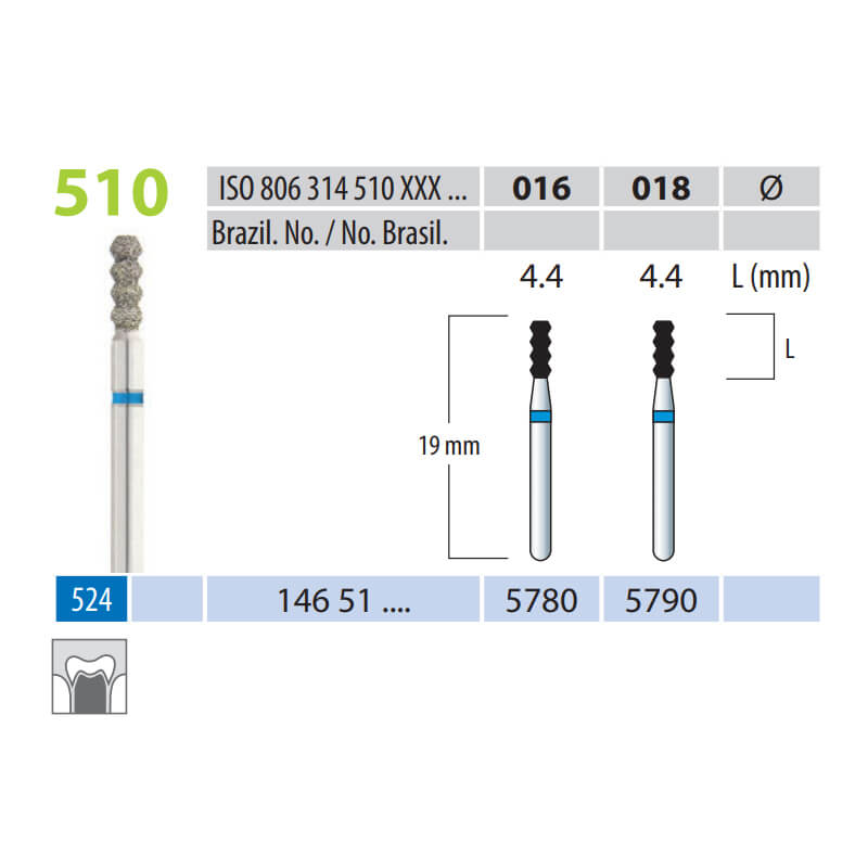 - Diamond Burs, Cylinder ZigZag, FG 510-016, Medium