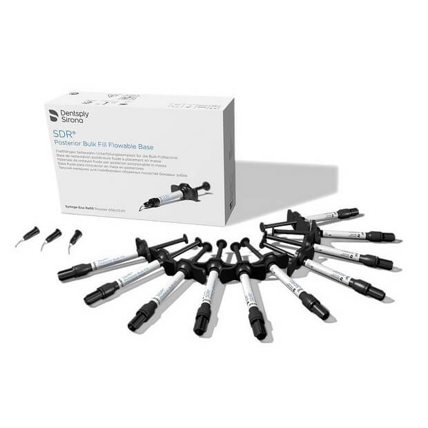 SDR has low Polymerisation Stress (shrinkage stress) allowing for filling up to 4mm in one cure, to then be overlayed with a methacrylate based universal posterior composite for replacing missing occlusal or facial enamel.