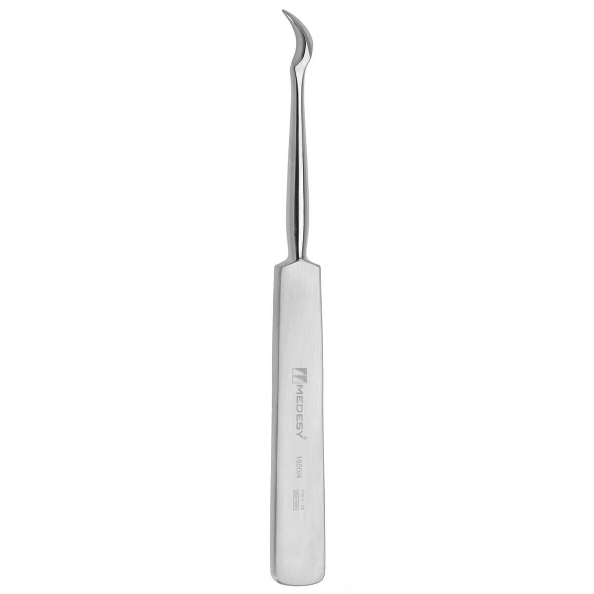 The Syndesmotome Chompret-Faucille N.4 is designed for the precise cutting of desmodontal fibers and detachment of ligaments prior to dental extractions. Its high-quality manufacturing ensures efficient and accurate performance during surgical procedures.